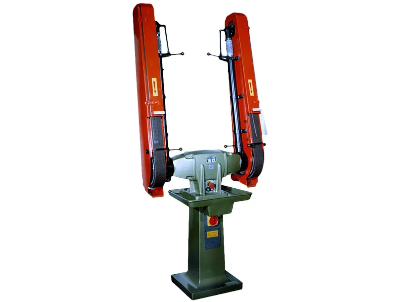 Various power ratings from Hp 1 to Hp 5, with one or two belts from 1300 mm to 2500 mm Different versions are available to the customer (bench belt grinder - cast iron column belt grinder - cast iron column belt grinder with low voltage control and exhauster - special versions on request) Belt grinders with HP 5 motor power and those equipped with a exhauster are supplied with low-voltage controls as standard. Grinding wheel excluded