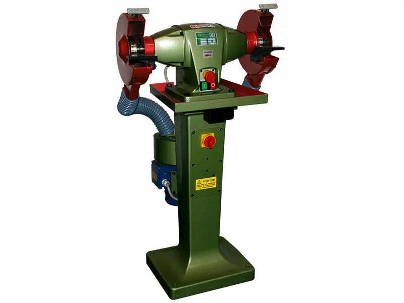 Différentes puissance de 0,5 HP à 5 HP pour des meules de 150 à 400 mm de diamètre Différentes versions disponibles pour le client (touret à meuler sur table - touret à meuler à colonne en fonte - touret à meuler à colonne en fonte avec commande basse tension et aspirateur - versions spéciales sur demande) Les machines dotées d'un moteur HP 5 et celles équipées d'un aspirateur sont livrées en standard avec des commandes basse tension. Meules abrasives exclues
